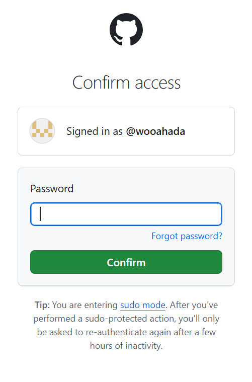 - Continue with GitHub 클릭 후 회원가입
