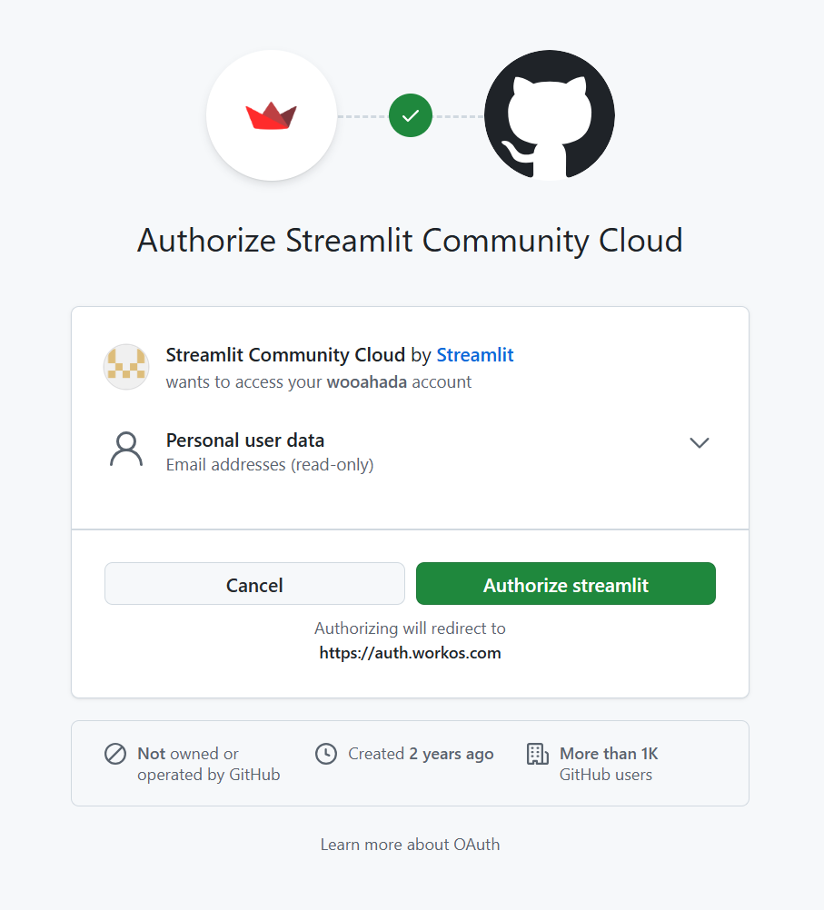 - Authorize streamlit 클릭